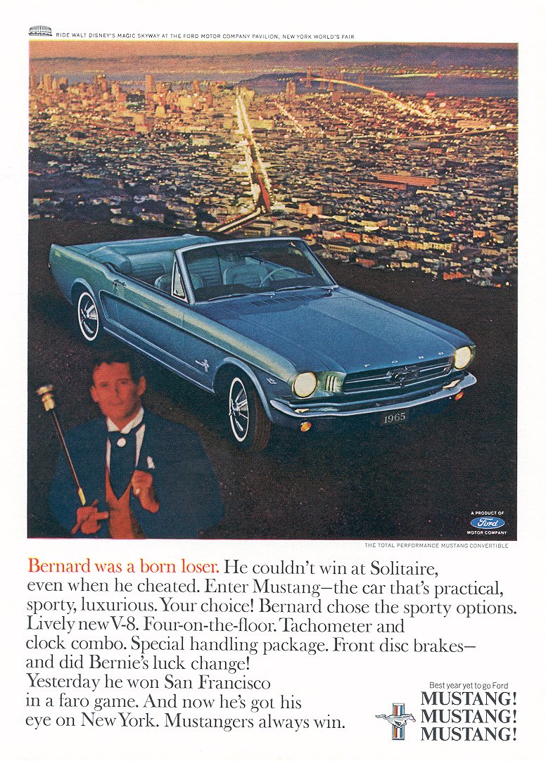 Introduced April 17th, 1964 at the World’s Fair in Flushing Meadows, New York, the 1965 Mustang was first available as either a coupe or convertible. The fastback became available in September of 1964.