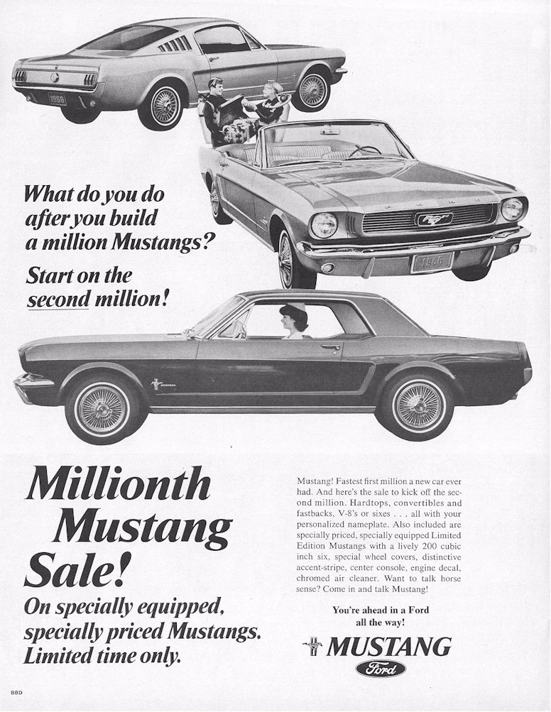 Ford had rushed to get the 64 1/2 prototype out to the general public, with the announcement that the Mustang would be the Indianapolis pace car of 1964. In an effort to keep cost down and speed up production, Ford borrowed a few parts from their earlier models, namely the Ford Falcon. 1966 was the last year that Ford used these parts and in 1967 the Mustang was revised and made more uniquely it’s own.