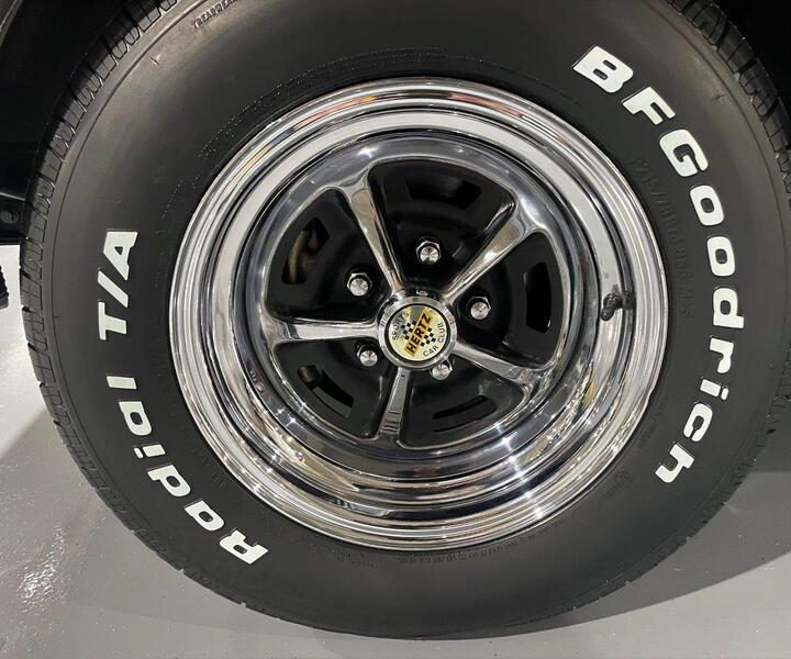 The exterior black paint and gold Le Mans stripes are in very good condition – no dents or dings. The bright trim is very good, showing only very minor pitting in places. Inside, the upholstery is in good shape, no rips or tears or seam separations and the headliner is in excellent condition. The instrument panel is clean and all the lights and gauges work.