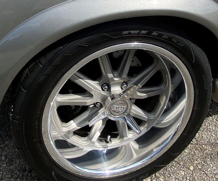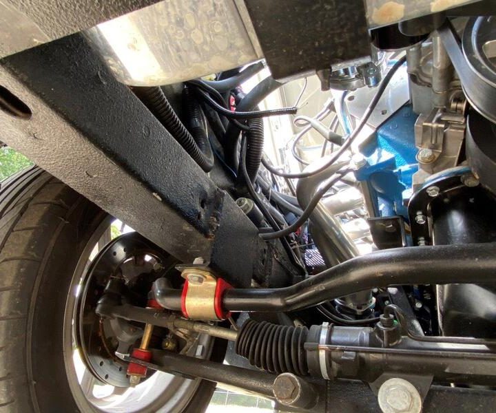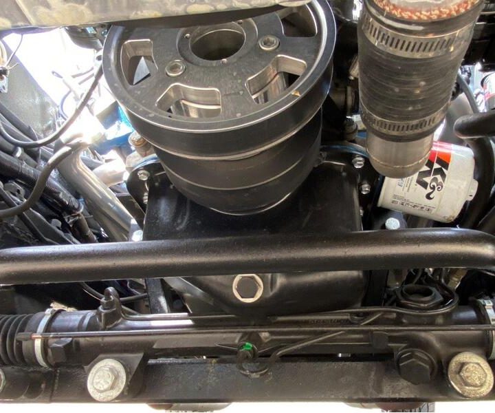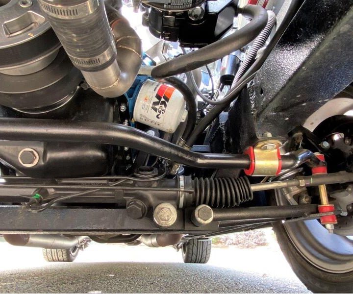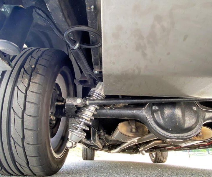 The engine is mated with a Tremec five speed manual transmission – delivering great acceleration through the gears and a nice highway cruise in fifth. Power rack and pinion steering was installed to improve handling, along with 4 wheel power disc brakes with a Wilwood master cylinder. The fuel tank is high quality stainless steel from Rick’s Tanks.