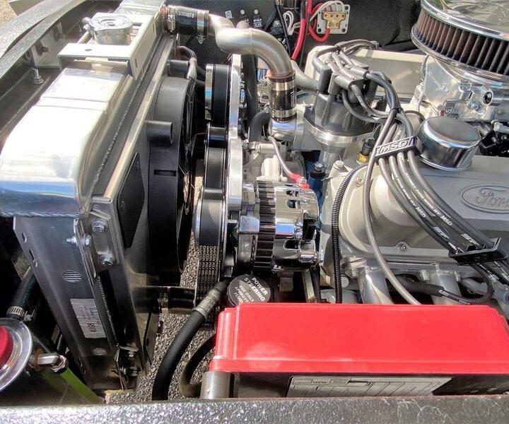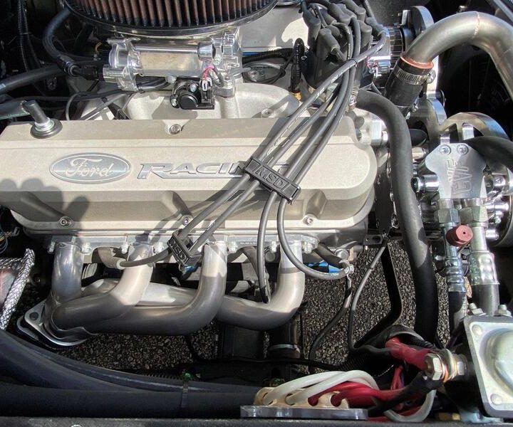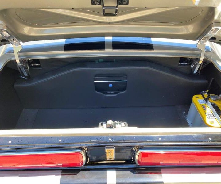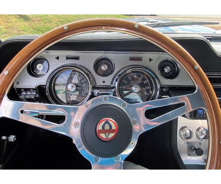 You’ll stay cool with a Vintage Air “Gen IV” air conditioning and heating system, with killer in car audio from an Alpine system with amplifier and sub woofers (your neighbors will hate you). The interior features Dakota HDX gauges to maintain the look and feel of the originals, but with better accuracy and reliability. Tilt steering, Shelby pedal box, console, and a Detroit Speed wiper system replace the original Ford unit.