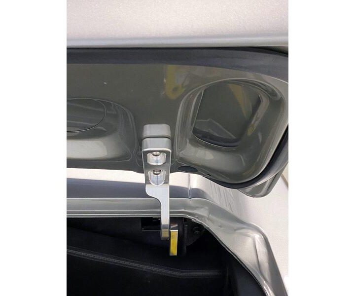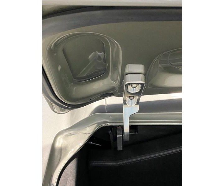 The side bolstered seats from “Mustangs to Fear”. A roll bar with seat belts and shoulder harnesses will keep you firmly in place around the corners. A remote trunk release was also installed.