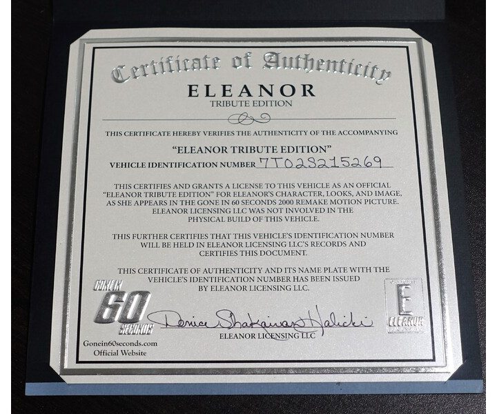 The vast majority of the Eleanor replicas you see online were built to look like Eleanor, but don’t have the equipment or certification documents to back it up. This one checks all the boxes.