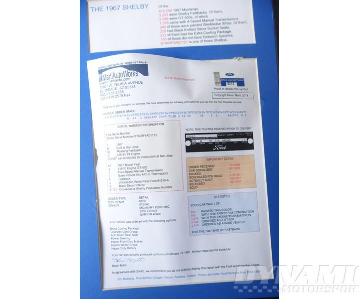 It is fully documented in the latest edition of the Shelby American Automobile Club (“SAAC”) Registry, as well as by Marti Report (see “MartiAuto.com” for more information).